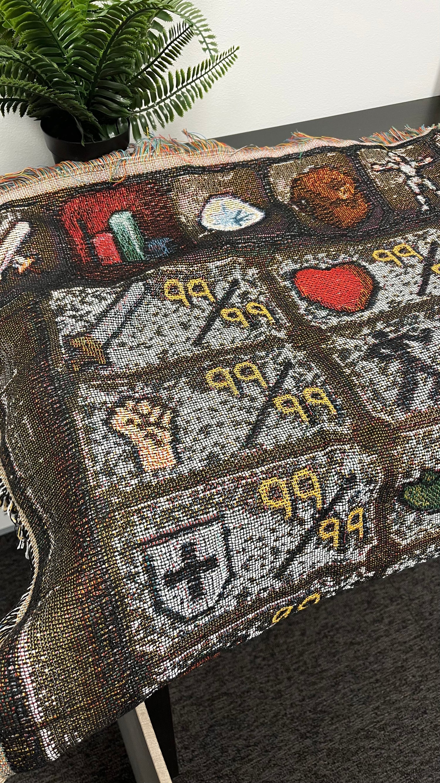 All our blankets are handmade. We own a small business that own a few looms and make tham all by hand.